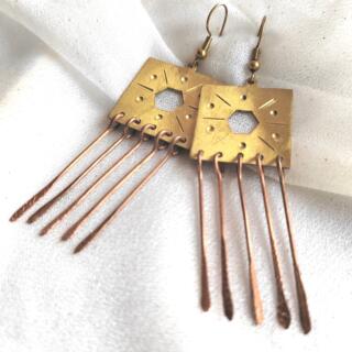 حلق من النحاس البيور نقش يدوي النحاس. احمر اصفر