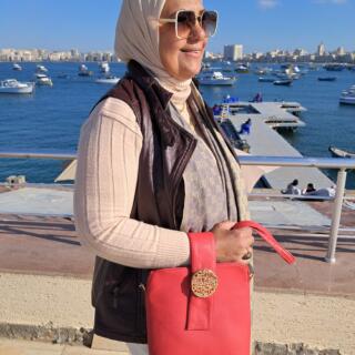 شنطة يد لون بنى دق يدوى ورود