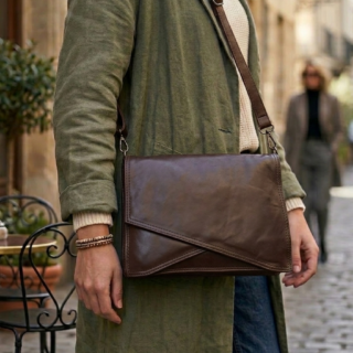 - شنطه جلد طبيعي ضاني 5 جيوب ..جيب امامي منفصل..2 جيب عادي..2 جيب بسوسته..يد جلد ..لون بني