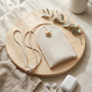 - شنطه عمليه وخفيفه للموبايل تاخد موبايل كبير بالجراب بتاعه .. ممكن تتغسل ..مصنوعه يدويا بالخيط القطن