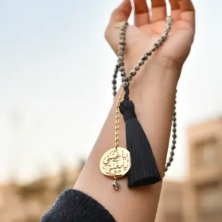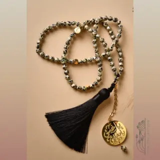 Dalmatian rosary necklace with 18k Gold Plated Brass Pendant