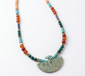 Multicoloured stones necklace with bluerust pharoah pendant