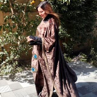 Velvet brown chocolate kaftan with oriental touch