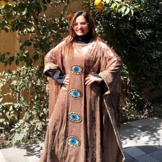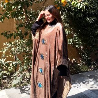 Velvet brown chocolate kaftan with mixed tiger leather fabric and the unique oriental touch 🤎