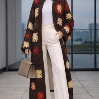 A cozy handmade crochet sweater in a rich chocolate brown shade. Designed with a textured finish and statement balloon sleeves, it’s warm, comfortable, and perfect for everyday wear.