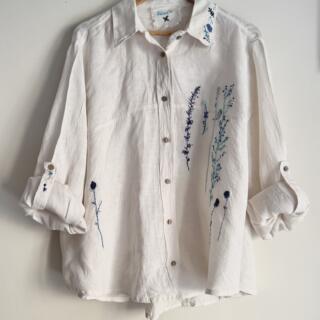 - Hand-embroidered on pure linen fabric