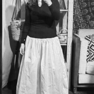 material: Ribbed black cotton upper top with a poplin Skirt that completes the elegant look of your statement dress.