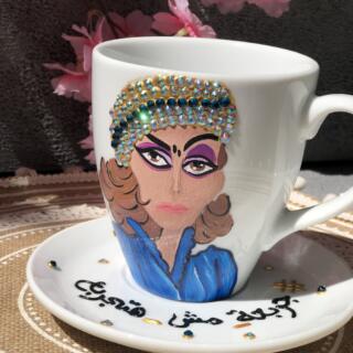 Hand-painted portrait of bakyza Hanem on porcelain white mug