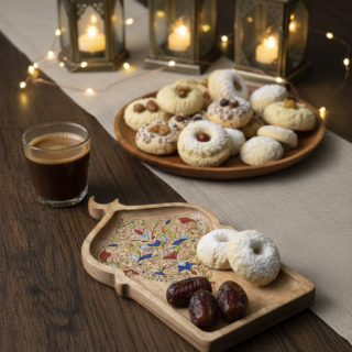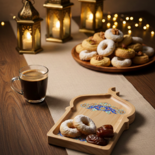 Versatile Serving Companion: Perfect for presenting Ramadan treats like dates and nuts, or as a stylish personal tray for your morning coffee/tea paired with biscuits or Eid sweets.