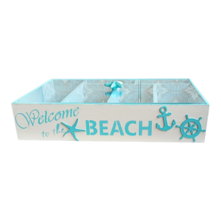 Cutlery box with a plexiglass lid to keep your silverware clean and tidy decorated with a mint sea creatures pattern size 45*32 cm