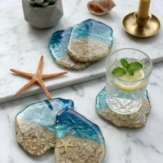 There is something about the way the light hits the shore that we never want to leave behind. These handcrafted resin coasters are designed to bring that exact moment into your home.