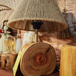 وحدة إضاءة من الخشب الطبيعي مع شابوه بخيوط الخيش الطبيعي