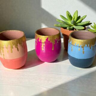 Handpainted pottery pot- set of 3