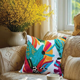 خدادية تطريز شنيط بخيط الصوف من النباتات والورود بالوان مختلفة.