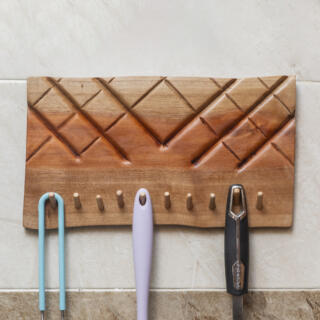تتميّز بتشطيب متين وعلّاقات خشبية قوية تناسب الملاعق والمغارف والمصافي وغيرها من الأدوات اليومية.