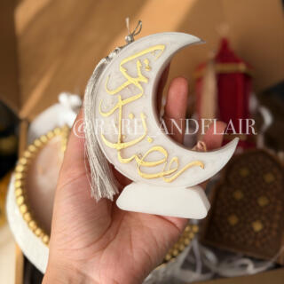 A beautiful crescent-shaped candle, designed to bring a soft Ramadan glow to your home. Perfect for festive décor or thoughtful Ramadan giveaways.