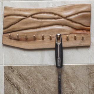 تتميّز بتشطيب متين وعلّاقات خشبية قوية تناسب الملاعق والمغارف والمصافي وغيرها من الأدوات اليومية.