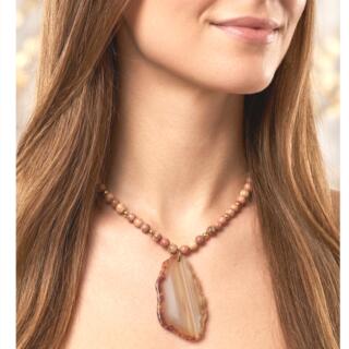 عقد من العقيق ودلاية من العقيق المشغول بالنحاس الابيض