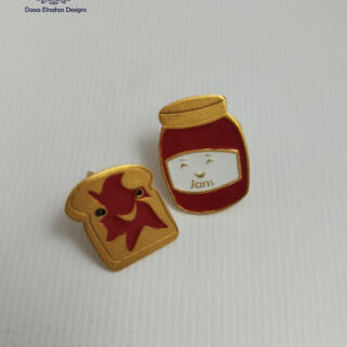 Gold plated brass stud pairing earrings toast and jam with red enamel (1.5 cm height)