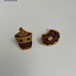Gold plated brass stud pairing coffee and donuts with brown enamel (1.5 cm height)
