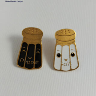 Gold plated stud pairing earrings salt and pepper with enamel (E201XMG)