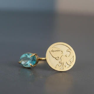 Gold plated double ended ring Aquarius and zircon (R247XMG)