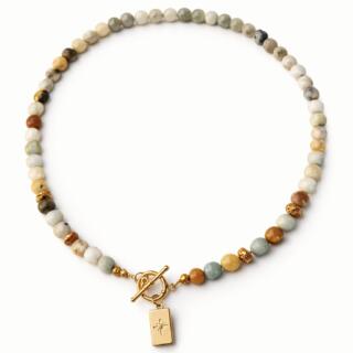 Amazonite & Agate mixed gemstone necklace with gold accents. One piece