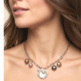 سلسلة. قصيرة. من الصدف واللولي وسلسلة. سلفر. طلاء. فضة