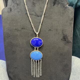 - Handmade wire wrapped brass ring with blue agate gemstones.
