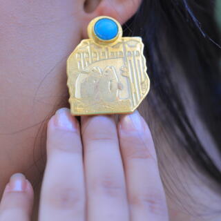 Earrings crafted from yellow copper, plated with 24K gold, inspired by the sacred symbols of ancient Egyptian civilization.