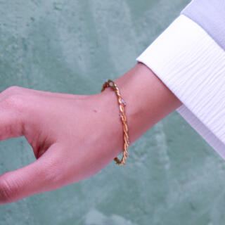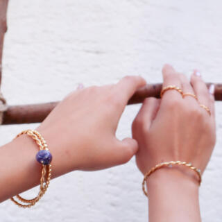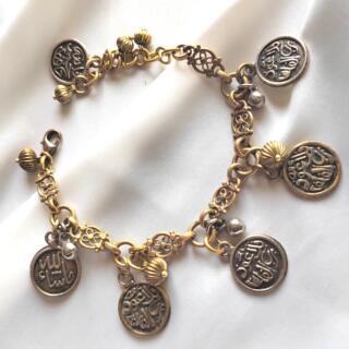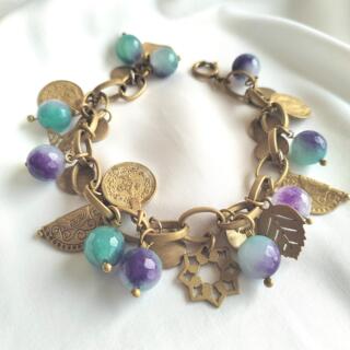 Anklet with multi bluish goldish stones and seashell in flower shape