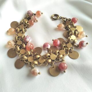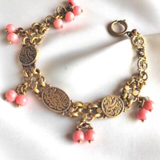 Anklet made of burgundy alabaster and seashell with a gold plated accessory