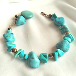 Anklet made of square turquoise stones with three unique hamsa pendants