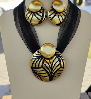 The earrings are available for immediate purchase, with the option to create a full matching set (earrings, bracelet, and necklace) upon request using the same design. -