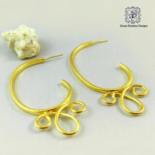 حلق من النحاس المطلي. دهب وحجر من الصدف