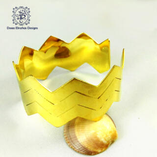 حلق من النحاس. مطلي. دهب. و حجر من الصدف