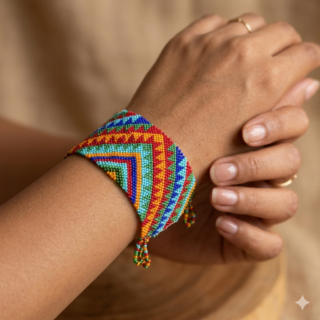 اسورة خرز تشيكى نويبع تصميمات هندسية مستوحاة من التراث السيناوى .