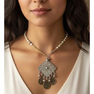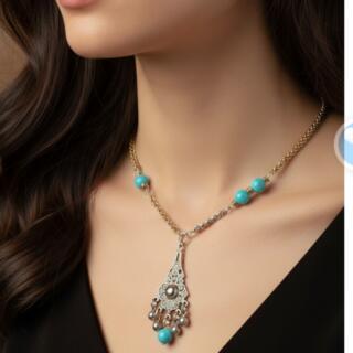سلسلة ودلاية من. النحاس المطلي دهب و فضة و مزينة بالعقيق