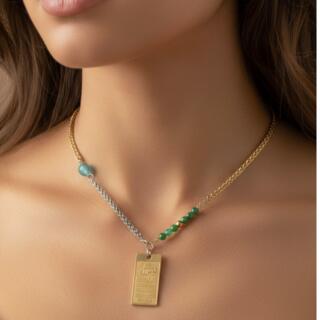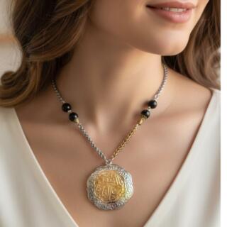 سلسلة ودلاية من النحاس المطلي دهب و فضة و العقيق