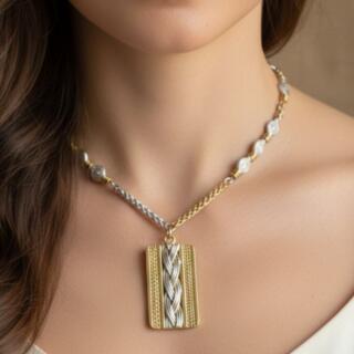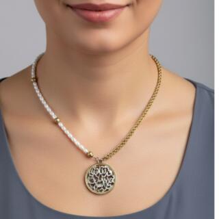سلسلة ودلاية من النحاس المطلي دهب. و. فضة. والصدف