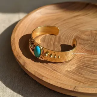 Stainless steel cuff bracelets with turquoise stone & jade stone.