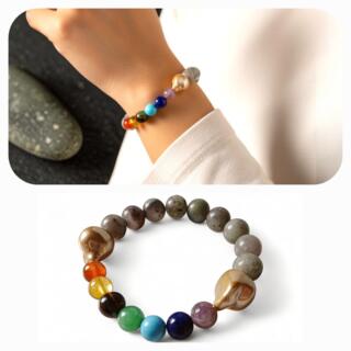 A set of 2 bracelets made of Shell pearl stone beads in off-white, rose and grey