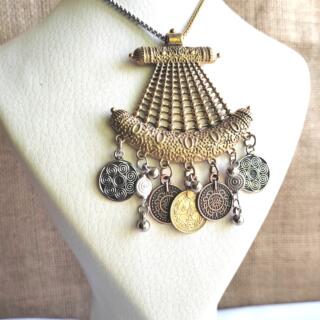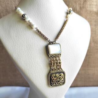 سلسلة من النحاس المطلي الفضة و مزينة بفصوص الصدف