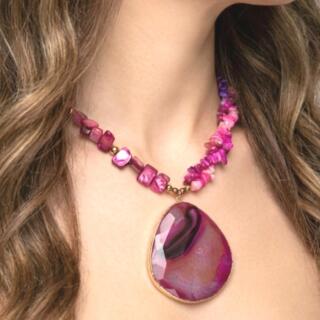 عقد من العقيق ودلاية من العقيق المشغول بالنحاس الابيض