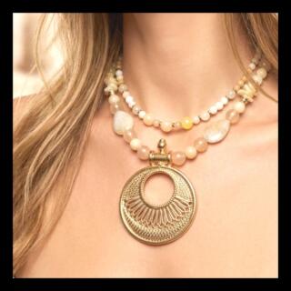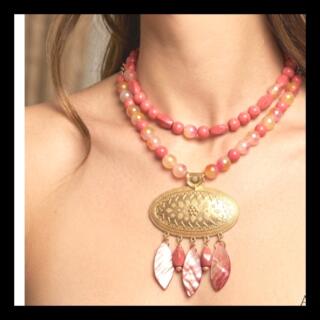 عقد من. العقيق و دلاية من العقيق المشغول بالنحاس الابيض