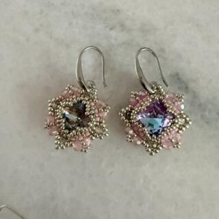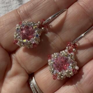 Handcrafted earrings featuring Swarovski faceted, crystal centers, surrounded by blush, Miyuki, Delica beads and metallic accents. Designed to catch the light beautifully, each pair is one-of-a-kind and made with meticulous Attention to detail.