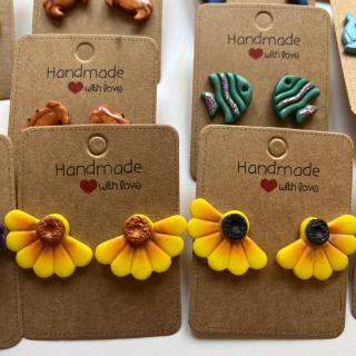 Handmade Polymer Clay Sunflower Half Flower Earrings – Stainless Steel Back