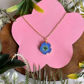 Handmade ceramic baby blue eyes flower charm comes with 45cm stainless steel chain.
