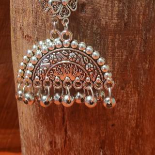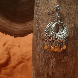 Boho ethnic fallahy earrings with brass and silver color small pendants