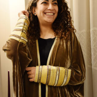 Olive elegance with vintage peacock cuffs — a statement in every detail. 🦚✨